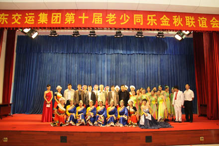 2011年9月19日,集團公司在多功能廳舉行了第十屆“老少同樂”金秋聯誼會。省委老干部局副局長、山東老年大學校長陶克,國資委黨委副書記裴建華,國資委企業離休干部工作處處長馮少銳,省交通運輸廳離退休干部處處長王建中,省委老干部局省直工作處副處長張鵬遠及集團公司總經理、黨委副書記王謙,董事、工會主席張志堅,紀委書記劉鳳儀等領導參加了此活動。會上,220多名團員青年與離退休干部、老同志載歌載舞,歡聚一堂,現場其樂融融,一片歡聲笑語。通過歌舞、器樂、魔術、書法等形式,青年員工向老干部表達了尊老、敬老、愛老之意,老干部也抒發了永遠愛黨、愛國、愛企之情。