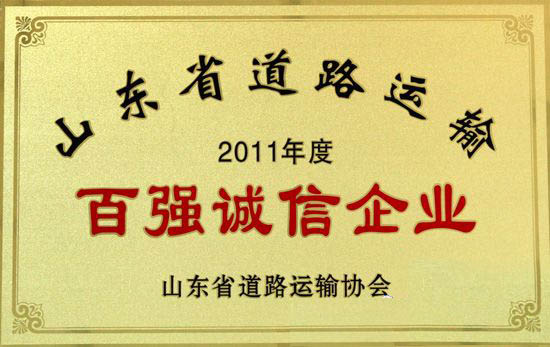 “山東省道路運(yùn)輸2011年度百?gòu)?qiáng)誠(chéng)信企業(yè)”稱號(hào)