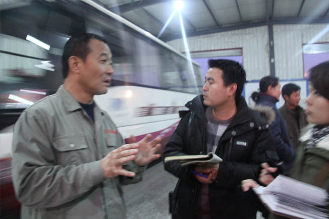 在濟南長途汽車總站,大家參觀了售票處、檢票處、報班處、兔兔快運及集團公司監控管理中心,體會到了總站員工熱情高漲的工作狀態、整潔有序的辦公環境,嚴緊而又人性化的創新管理辦法,以及集團公司規范高效的安全管理信息系統;濟宇高速則充分展示了他們獨具特色的企業文化、鮮活的培訓教育,高端創新業務開發以及安全管理十二法等工作亮點。其中駕駛員賈湘鳴安全行駛367萬公里沒有發生一次安全事故的高超技術,讓隨行記者嘖嘖稱贊;在黃河航運局,采訪小組參觀了洛口浮橋、齊河造船廠、感受了黃河航運局承建的新式游船,大家感嘆黃航人將浮橋建到中俄、中朝邊境、開發水上旅游項目等創舉,讓造船業這門“老手藝”煥發出新活力,同時更感受到他們不屈不撓、勇于開拓的拼搏精神;在濟南西客站綜合客運樞紐施工工地,采訪組了解到,為確保工程質量,建造細節精確到公廁所里一堵墻的厚薄,人性化設計,點滴細微到導乘牌、空調的設計位置,那緊鄰嘈雜工地的簡易辦公板房,那為保證工期經常加班至深夜的員工以及他們如數家珍般介紹工程進度情況的興奮神情,都深深打動了每一位成員,聚影小組的鏡頭紛紛對準管理人員和工人們忙碌的身影;在交運物流,大家對LNG?;愤\輸工作興趣十足,圍在LNG?;愤\輸車旁,不停地提問、拍照,了解其發展方向及安全性能,感嘆“物流鐵軍”遠赴新疆,安全運送的艱辛,贊嘆其超前的市場定位及大有可為的市場前景,期待再添新運力,拓展新業務的好消息;在兔兔快運,倉庫中有序擺放著各種貨物,公司樓下整齊停放著通勤班車,在職工食堂,員工笑意盈盈吃著“免費午餐”,一幕幕場景,讓大家不由深深感受到多年來積極穩定的發展,讓“兔兔”職工們擁有了極高的“幸福指數”和“理想指數”,而這一切又折射到工作中,形成了高效的執行力;在汽車修理廠保險理賠大廳,記者們詳細詢問了在便民、惠民等方面為廣大市民提供的各項措施以及理賠知識,觀看了修理廠一輛被損私家車從維修到噴漆后煥然一新的變化過程,稱贊其優良的修理技術和嚴格規范的動作流程;在保修廠安全檢測線,成員們對檢測程序中涉及的各種專業術語和檢測注意事項刨根問底,為他們頂住壓力,不為任何不合格車輛“開后門”的堅定立場豎起大拇指!