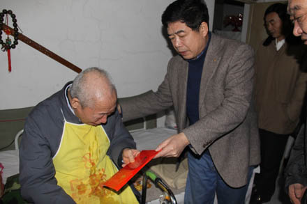 1月17日上午,省國(guó)資委巡視員裴建華一行領(lǐng)導(dǎo)在集團(tuán)公司董事、工會(huì)主席張志堅(jiān)的陪同下,冒雨來(lái)到集團(tuán),先后前往離退休老黨員、老干部王德明、鄒全會(huì)的家中,親切看望了他們的身體和生活狀況,代表省國(guó)資委向他們贈(zèng)送了慰問(wèn)金,并祝福他們安度晚年、新春愉快。省國(guó)資委機(jī)關(guān)黨委專職副書(shū)記王在新、離休干部處調(diào)研員王萬(wàn)珂參加了走訪慰問(wèn)。