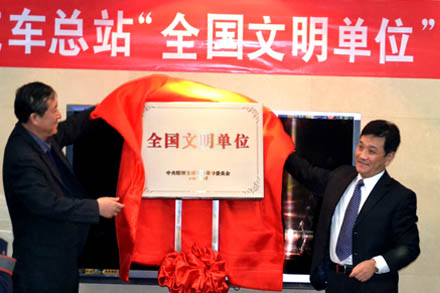 2012118日,省文明辦、省國資委文明辦共同在山東交運集團濟南長途汽車總站舉行“全國文明單位”揭牌儀式,省文明辦副主任、活動協調處處長宮松章,活動協調處科長張云峰,省國資委黨委宣傳與群眾工作部部長胡兵,調研員張慶旭,集團公司董事長、黨委書記吳宗昌、總經理、黨委副書記王謙,黨委副書記楊國強出席了揭牌儀式。