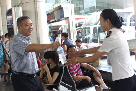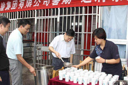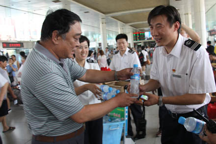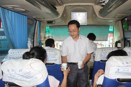 7月3日和5日,集團(tuán)公司組織開(kāi)展了“夏日送清涼”系列活動(dòng)。集團(tuán)公司領(lǐng)導(dǎo)帶領(lǐng)總部黨員干部職工先后到濟(jì)南長(zhǎng)途汽車(chē)總站、總站南區(qū)和刁鎮(zhèn)汽車(chē)站,慰問(wèn)在酷暑下奮戰(zhàn)一線(xiàn)的廣大干部職工和過(guò)往旅客,為他們送上綠豆湯、冷飲和礦泉水,讓他們感受到組織的關(guān)愛(ài)和夏日的清涼。