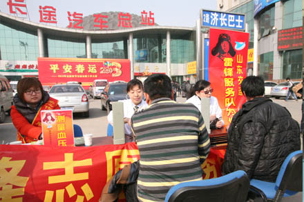 由集團(tuán)公司組宣部、團(tuán)委牽頭,總部團(tuán)員青年和聯(lián)運(yùn)出租、黃河航運(yùn)局船員服務(wù)公司共同參與了由多家媒體與省殘聯(lián)共同組織的全省特困腦癱兒童和濟(jì)南市特困殘疾朋友免費(fèi)游泉城活動(dòng)。義務(wù)提供車輛和游船服務(wù),讓殘疾人朋友體會(huì)到了春天的溫暖。總站南區(qū)繼續(xù)以“關(guān)愛號(hào)”為主題,和泉城義工共同發(fā)出了“人人都是志愿者,我做義工一小時(shí)”的倡議,為社會(huì)文明建設(shè)貢獻(xiàn)力量。開展了圓空巢老人游園夢(mèng)活動(dòng),帶領(lǐng)敬老院孤寡老人游覽了濟(jì)南動(dòng)物園,讓老人平生第一次見到了大熊貓;汽車東站開展了返程農(nóng)民工免費(fèi)電話報(bào)平安活動(dòng),團(tuán)支部還組織團(tuán)員青年到周邊小區(qū)義務(wù)清潔,得到了附近居民的一致好評(píng),免費(fèi)發(fā)放的班車時(shí)刻表,以方便居民乘車為目的,較好地宣傳了汽車東站新形象、新風(fēng)貌;長(zhǎng)清分公司團(tuán)支部開展了服務(wù)一線送溫暖活動(dòng)。他們來到位于長(zhǎng)清老城區(qū)的發(fā)車站點(diǎn),準(zhǔn)備了茶葉、一次性紙杯以及打掃工具,為收車歸隊(duì)的駕駛員送上一杯熱茶并為其清掃車內(nèi)衛(wèi)生,讓他們?yōu)橄乱话嘬嚨臓I運(yùn)備足精力;同時(shí),為堅(jiān)守在交通指揮崗位上的交警同志送上一杯熱茶表達(dá)感謝與慰問。