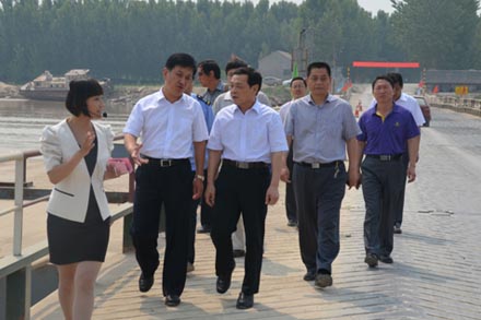 6月9日,集團公司董事長吳宗昌、董監辦主任單天振一行在集團公司黨委委員、黃河航運局局長孫延剛、副局長徐效法、紀委書記張立國陪同下到濱州浮橋、濼口浮橋調研。