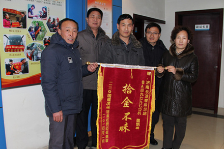 春運(yùn)期間,集團(tuán)各單位黨員干部以認(rèn)真負(fù)責(zé)的工作態(tài)度、強(qiáng)烈的社會責(zé)任感,在工作崗位上兢兢業(yè)業(yè),熱心幫助困難旅客,得到了廣大旅客的贊揚(yáng)??傉局伟部泣h員杜海寧在站內(nèi)巡邏時,發(fā)現(xiàn)一名離家出走的14歲小女孩,他將其帶回辦公室照料并及時通知其家人,事后,小女孩的父母一再表示感謝, 并當(dāng)場寫下一封表揚(yáng)信;2月10日, 旅客張先生的女兒在乘車途中不慎將背包遺落在第三客運(yùn)分公司車號為魯A49797的班車上,駕駛員撿到背包后進(jìn)行了妥善保管,并積極主動多方聯(lián)系失主,最終,張先生在總站南區(qū)服務(wù)熱線的幫助下與駕駛員取得聯(lián)系,2月12日,崔先生帶著一面錦旗來到總站南區(qū),感謝班車司機(jī)及車站工作人員;第四客運(yùn)分公司濟(jì)南至壽光線路班車駕駛員伊健文在車站收車區(qū)發(fā)現(xiàn)一旅行包,內(nèi)有筆記本電腦、身份證、護(hù)照等重要物品,他及時找到旅客并返還失主,失主為此深受感動,主動寄來表揚(yáng)信并打來電話表示誠摯謝意;第四客運(yùn)分公司安機(jī)部副經(jīng)理孫勇?lián)斓絻?nèi)有一萬多元的錢包,他第一時間根據(jù)身份證聯(lián)系到失主,失主帶著感謝信和錦旗來到單位,感謝其拾金不昧的良好品德。