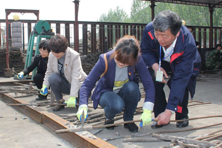 女隊(duì)員們?cè)谇竦V黨委副書記彭士偉、黨群部副部長(zhǎng)季書強(qiáng)的引導(dǎo)下,先后參觀了原煤倉(cāng)、洗煤線、機(jī)修車間、維修廠、園區(qū)等地。其中,草根發(fā)明、成本計(jì)量單等節(jié)能降耗舉措給大家留下了深刻的印象。在維修廠區(qū),女隊(duì)員們參與了水泥鋼筋的回收再造工作,手持6斤鐵錘,體驗(yàn)了維修工人每人每天徒手清理200根鋼筋的工作量。真實(shí)感受了員工為企業(yè)節(jié)約每一分成本的真情實(shí)感。