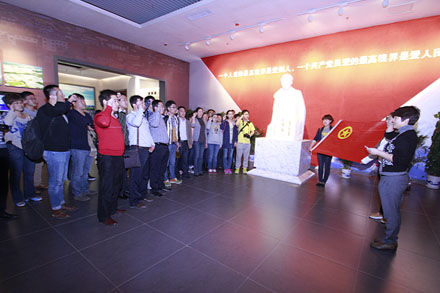 告別邱集煤礦,團(tuán)員青年們來(lái)到位于聊城東昌湖邊的孔繁森同志紀(jì)念館,跟隨著講解員聲情并茂的解說(shuō),團(tuán)員青年們感受著這位人民好公仆的光輝事跡,為孔繁森同志“一塵不染兩袖清風(fēng)視名利安危淡似獅泉河水,二離桑梓獨(dú)戀雪域置民族團(tuán)結(jié)如岡底斯山”的精神境界所震撼,為孔繁森同志偉大的人格魅力和堅(jiān)定的黨性信念所感動(dòng),同時(shí)也為這樣的好干部過(guò)早的離去而深感惋惜。在孔繁森同志雕塑前,全體隊(duì)員莊嚴(yán)的重溫了入團(tuán)誓詞。