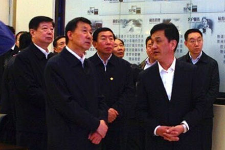 集團公司總經理、黨委副書記王謙向國務委員王勇、省委書記姜異康介紹總站所獲得各項榮譽及集團精神文明建設情況