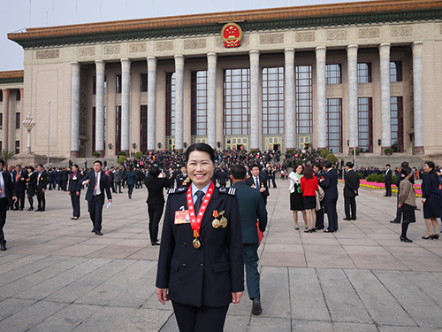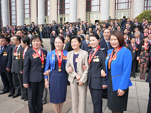 山東交運濟(jì)南長途汽車總站總服務(wù)指導(dǎo)師李文與全國其他勞模在北京人民大會堂前合影。