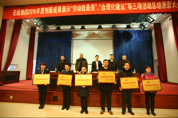 1月11日,集團(tuán)公司2015年度創(chuàng)新成果展示、“勞動(dòng)我最美”、“合理化建議”等三項(xiàng)活動(dòng)總結(jié)表彰大會(huì)在多功能廳舉行。集團(tuán)領(lǐng)導(dǎo)班子成員、總部各部室、各基層單位黨政工主要領(lǐng)導(dǎo)、部分職工代表和獲獎(jiǎng)?wù)叽砉?span lang=EN-US>200余人參加了會(huì)議。大會(huì)隆重表彰了長途汽車總站等6個(gè)“勞動(dòng)我最美”活動(dòng)優(yōu)勝單位、