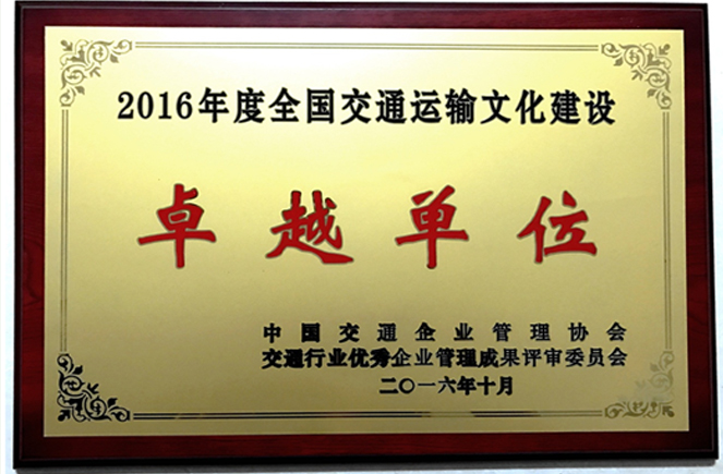 集團公司榮獲2016年度全國交通運輸文化建設卓越單位稱號