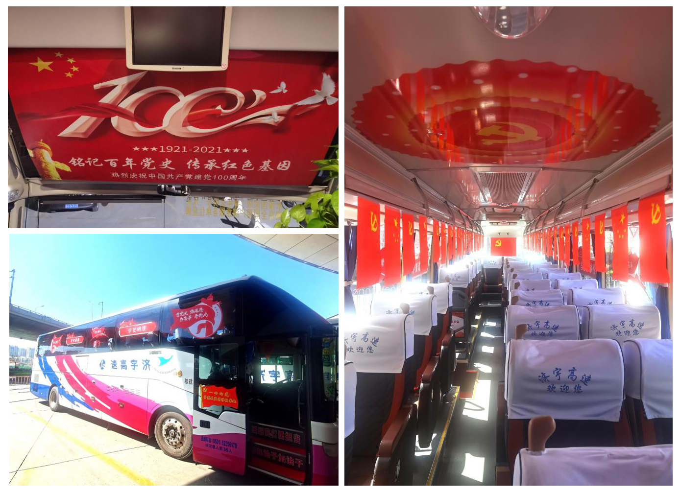 同時(shí),濟(jì)宇高速還將車(chē)輛進(jìn)行升級(jí)改造,推出“學(xué)黨史宣傳陣地”專(zhuān)用車(chē)輛,在十米車(chē)廂內(nèi)營(yíng)造出“銘記百年黨史,傳承紅色基因”的濃厚氛圍,講述了我黨從無(wú)到有,由微及著的艱辛歷程,依托客運(yùn)班車(chē)靈活、便捷的優(yōu)勢(shì)進(jìn)行多形式、多角度、全方位宣傳,使“學(xué)黨史”更加接地氣、聚人氣、見(jiàn)效果,將“學(xué)黨史”宣傳到更多的百姓心中,引導(dǎo)大家準(zhǔn)確把握開(kāi)展黨史學(xué)習(xí)教育“學(xué)史明理、學(xué)史增信,學(xué)史崇德,學(xué)史力行”的目標(biāo)要求,做到學(xué)黨史、悟思想、辦實(shí)事、開(kāi)新局。