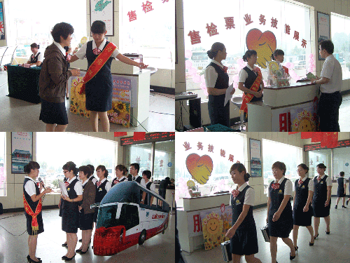 作為服務行業,售票處是直接面對旅客的窗口科室,微笑服務、規范服務、業務知識的熟練掌握是日常工作規范的重要體現。她們開展的重點旅客候車室、免費送票服務等創新項目,為旅客提供了快捷、方便、優質的服務。檢票處在服務中不斷延伸服務內涵,扎實開展崗位練兵活動,積極創新服務內容,開展了“金葵花笑臉”特色服務,想旅客之所想、急旅客之所急,為旅客出行提供細心、周到、全面的服務。