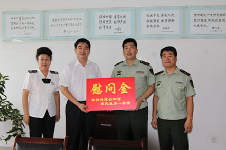 730日,在八一建軍節來臨之際,總站南區站長于承濤、黨委書記尹桂芳帶著全站員工對人民子弟兵的深情厚意,來到雙擁共建單位武警濟南七大隊,為戰士們送去節日慰問金和祝福,表達了南區全體職工對部隊官兵的崇高敬意和深切慰問,祝愿雙方以后更好地互助合作,積極探索軍企共建的新路子,全面推動部隊建設和車站安全生產工作再上新臺階,再創新水平。