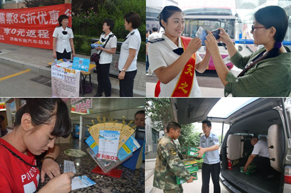 線下售票進校園 暑運期間,總站“學子服務隊”全面進駐濟南市區、長清大學城及章丘大學城20余所大中專院校,為學子們提供現場售票、現場發車等服務,截止目前,“學子服務隊”共售票26000余張。