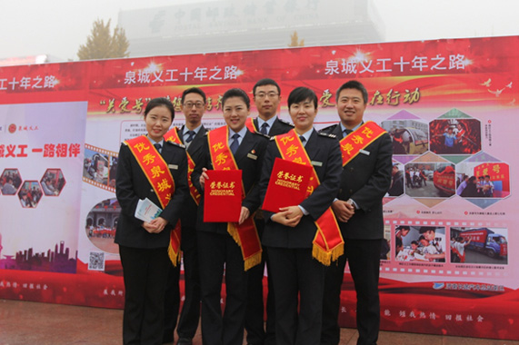 11月21日,泉城義工十周年公益嘉年華暨第五屆泉城義工評優表彰大會在泉城廣場舉辦。總站南區作為泉城義工十佳集體,在泉城義工嘉年華進行了團隊形象展示,并現場為市民提供了班次咨詢,出行方案定制等免費服務。總站南區兩名義工朱吉昀、孫曉娟榮獲“優秀泉城義工”榮譽稱號。