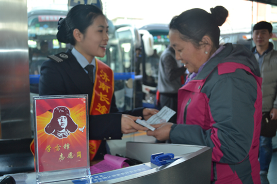 全新推出“雷鋒志愿服務(wù)”。在3月5日雷鋒日到來之際,檢票處特別設(shè)立“雷鋒志愿服務(wù)崗”,挑選業(yè)務(wù)精湛的員工組成“雷鋒志愿服務(wù)隊(duì)”,在候車大廳、長廊、收車區(qū)、公交車站等旅客密集區(qū),為廣大旅客特別是老弱病殘?jiān)杏椎戎攸c(diǎn)旅客提供班次咨詢、購票乘車的“一站式”服務(wù)和照顧小孩、運(yùn)送行李等系列愛心幫扶,弘揚(yáng)樂于助人、無私奉獻(xiàn)的雷鋒精神,傳播“奉獻(xiàn)、友愛、互助、進(jìn)步”的志愿服務(wù)理念。