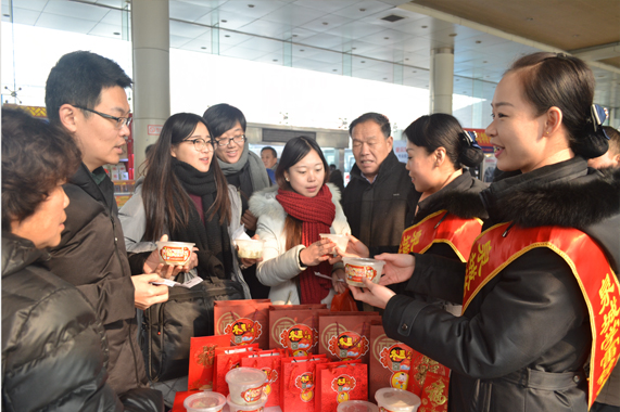 冬至餃子,旅途送暖。冬至當日,檢票部精心策劃了“冬至餃子旅途送暖”活動,準備了熱氣騰騰的水餃、裝滿禮物的福袋送給來站乘車的旅客,在寒冷的冬天為旅客送上一份溫暖。活動一經推出深受廣大旅客好評,得到《交通進行時》、《有么說么》等電視欄目的報道,樹立了總站優質的服務形象。