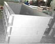 玻璃鋼貯槽、貯罐、水泥池襯里及金屬外殼的玻璃鋼襯里(或外復(fù))采用耐腐蝕樹脂和玻璃纖維表面氈作防腐蝕層,以不飽和聚酯樹脂和中堿玻璃纖維布作加強(qiáng)層,耐腐蝕性高。強(qiáng)度好,使用壽命長。廣泛用于電力,冶金、石油、化工、印染、機(jī)械、環(huán)保等行業(yè)的儲罐、酸洗槽、離子交換器等設(shè)備。