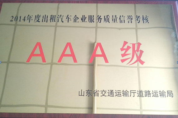 山東交運(yùn)出租榮獲行業(yè)服務(wù)質(zhì)量信譽(yù)考核三A資質(zhì)