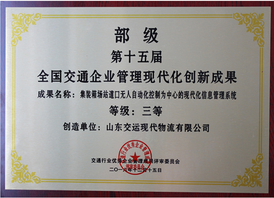 日前,山東交運(yùn)現(xiàn)代物流有限公司憑借道口無人自動(dòng)化控制為中心的現(xiàn)代化信息管理系統(tǒng),在與全國眾多知名企業(yè)同臺競技中嶄露頭角,榮獲全國交通企業(yè)管理現(xiàn)代化創(chuàng)新成果三等獎(jiǎng)(部級)。